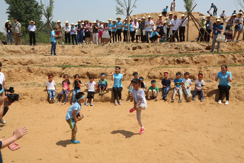 在启动仪式上,与会的幼教工作者和家长获赠了《河南儿童民间游戏集锦》一书,该书由河南省学前教育发展中心、河南省实验幼儿园、郏县教体局联合编辑出版,以期老师、家长真正地思考游戏、传承游戏、创新游戏,让游戏的乐趣、游戏的智慧真正点亮孩子快乐的童年。该书收录了95个传统民间游戏,都是一些不知名的会玩者、能玩者、爱玩者随时随地“玩性”一来的杰作。其中蕴含了童年的智慧和乐趣,以及童心、童真的表达与释放。在随后的游戏观摩中,水系建构、浑水摸鱼、管道迷宫、滑沙土、翻花绳、斗鸡、爬网等特色鲜明、充满童趣的游戏,吸引了来自郑州、开封、许昌、平顶山等地的200余名幼教工作者和家长的驻足欣赏。