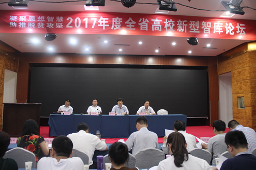 为贯彻落实中央和省委脱贫攻坚的重大决策部署,发挥高校思想库、智囊团作用,8月25日,“凝聚思想智慧,助推脱贫攻坚”2017年度河南省高校新型智库论坛在郑州举行。省委高校工委副书记、省教育厅党组副书记郑邦山出席会议并讲话,省扶贫办副主任汪继章作大会主题报告,河南农业大学党委书记程传兴等8位专家作交流发言,来自全省100余所高校近200名专家学者参加了会议。