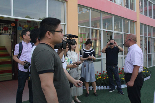 调研团在民权县王桥镇中心幼儿园采访园长